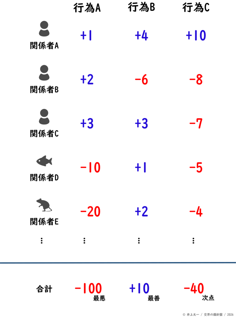 ただし、私たちは行為の影響を考える際に、得てして人間以外の生きものを「関係者」の枠から外してしまう。動物たちへの影響を考えると、行為の善悪が全く変わってくることが多い。