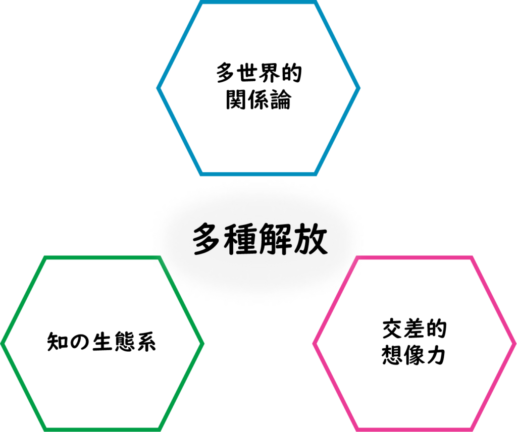 《交界の羅針盤》は、多種解放(Multispecies Liberation)の哲学を基幹に据え、互いを補完する三つの要素がその柱をなします。